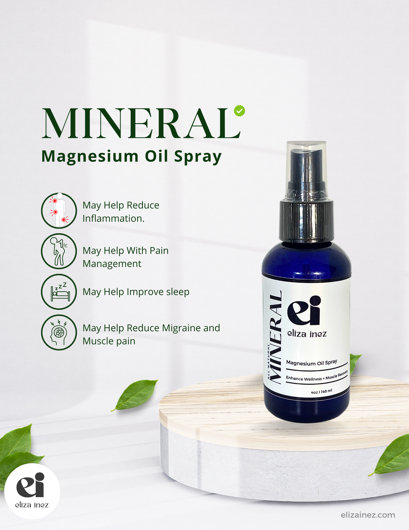 This is topical magnesium in a spray form that you can spray onto the bottom of your feet. As the magnesium oil absorbs it helps relieve stress, and migraines, improves insomnia helps reduce anxiety, reduces muscle pain, and more! Made from the most potent form of magnesium. With consistency, you will see great results.